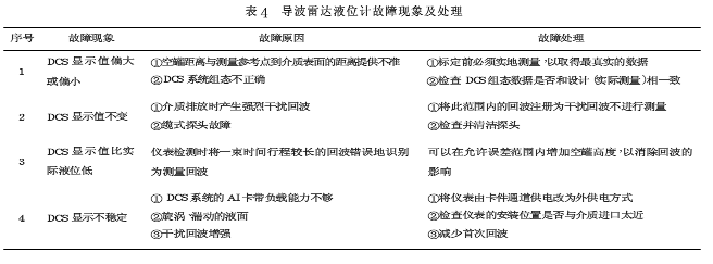 另外,2012年新建20萬t/a合成氨系統2000m³液氨球罐上安裝有一臺LD51纜式導波雷達液位計(位號:LT1201A)和一臺磁翻板液位計,該信號均引入DCS顯示。在開始安裝調試過程中發現雷達液位計與磁翻板液位計顯示不一致,經檢查發現導波雷達液位計取樣管原始高度不正確,經重新調整并對其相關參數進行設定后測量顯示一致。長期穩定運行,給工藝控制提供了準確數據,滿足了工藝要求,有效地保障了設備和人身安全。2014年4月儀表人員抽樣比測記錄數據,見表2所示。