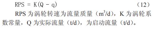 ①吸汽量。計算射孔層位吸汽量,可以通過六參數純水罐液位計的渦輪流量計實現。忽略低流速時渦輪的非線性響應及密度對渦輪轉速的影響,則渦輪轉速 RPS 與流速成正比 :
