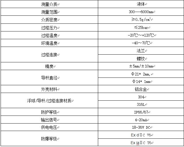 Float-11不銹鋼浮球液位計技術(shù)參數(shù)表