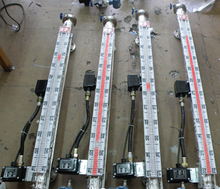 在液位計立管上由用戶設定上、下限位置安裝控制器,控制器內帶有自保持作用的舌簧開關,利用磁性浮子隨液位移動使簧片開關動作時,實現報警或限位控制。