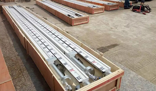 5、因運輸過程中為了不使浮球組件損壞,故出廠前將浮球組件取出液位計主體管外,待液位計安裝完畢后,打開底部排污法蘭,再將浮球組件重新裝入主體管內,注意浮球組件重的一頭朝上,不能倒裝。如果在出廠時已經將浮球組件安裝在主體管內,為保證運輸過程中不使浮球組件損壞,我們用軟卡將浮球組件固定在主體管內,安裝時只要將軟卡抽出即可。